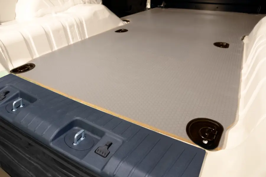 Lattia on tavaratilan perusta, ja mallikohtaisella suojalattiallamme saat vankan suojan kulumista vastaan. Lisäksi se on täydellinen ja vakaa pohja muiden sisätilojen varusteiden kiinnittämiselle. Suojalattiamme on valmistettu 9 mm:n koivuvanerista, jossa on erikoispinnoite kosteuden ja liukastumisen estämiseksi. Lattia toimitetaan tarvittaessa vahvistetulla reunasuojalla sisäänkäyntien kohdalla. Upotetut lastaussilmukat sisältyvät niihin automalleihin, joissa on alkuperäiset lattian lastaussilmukat.