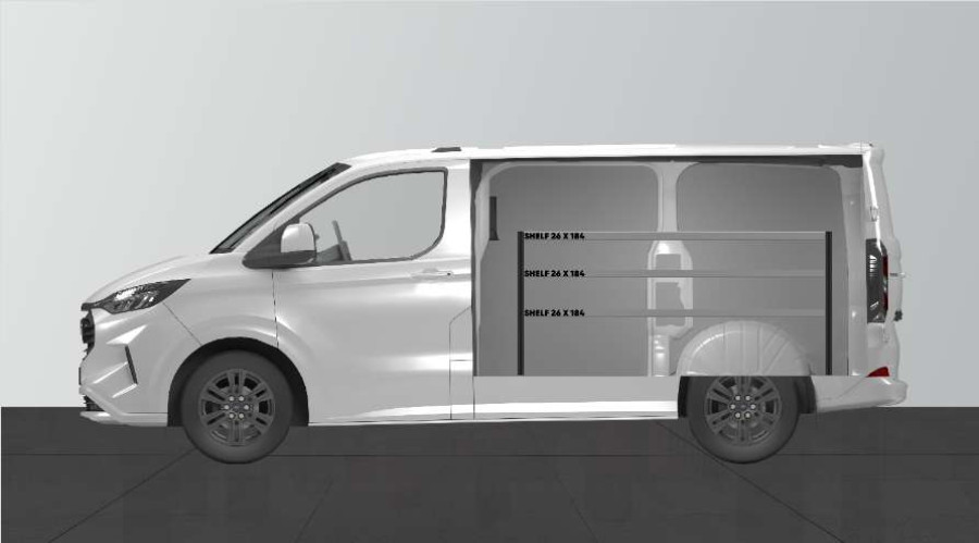 Autokaluste autoilijalle, joka haluaa säilyttää autonsa Ford Custom & VW Transporter L1 tavaratilan leveyden. Kalusteen syvyys on vain 262,5 mm, ja se mahdollistaa hyvät säilytysmahdollisuudet pienille tarvikkeille, kuten kiinteistönhoitajien, sähköasentajien ja LVI-asentajien ruuvipakkauksille ja pienille laitteille. Kalustetta voi täydentää kätevillä moduulilaatikoillamme. Päädyn täydentäminen Smartboxilla on myös suosittu vaihtoehto säilytystilan maksimoimiseksi.