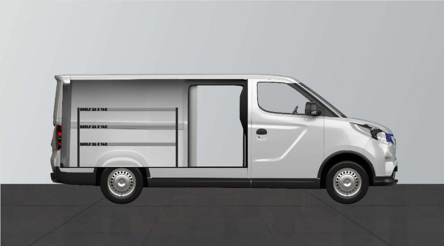 Lyhyempi autokaluste autoilijalle, joka haluaa säilyttää autonsa Maxus e-Deliver 3 L2 leveyden. Kalusteen syvyys on 262,5 mm, ja se mahdollistaa hyvät säilytysmahdollisuudet pienille tarvikkeille, kuten ruuvipakkauksille ja pienille laitteille kiinteistönhoitajien, sähköasentajien ja LVI-asentajien työssä. Kalusteet sopivat kaikkiin autoihin, joissa on tai ei ole sivuovia, ja kalustetta voi täydentää kätevillä moduulilaatikoillamme. Päädyn täydentäminen Smartboxilla on myös suosittu vaihtoehto säilytystilan maksimoimiseksi.