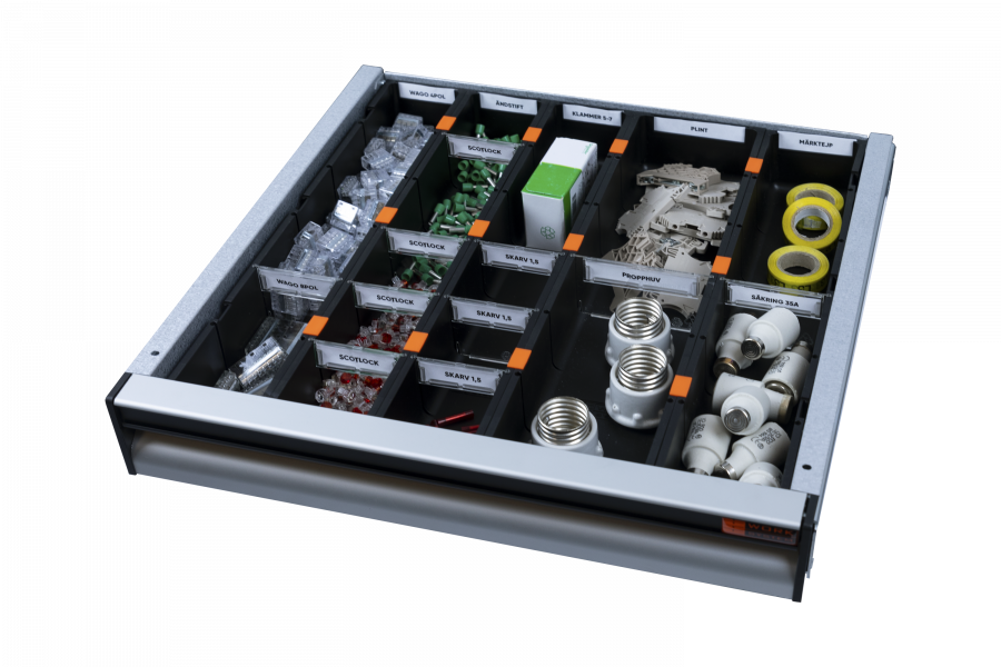 Voit myös täydentää sisäkelaatikoita tarroilla ja lisäjakajilla.