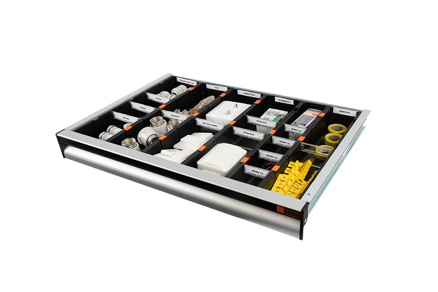 Voit myös täydentää sisäkelaatikoita tarroilla ja lisäjakajilla.