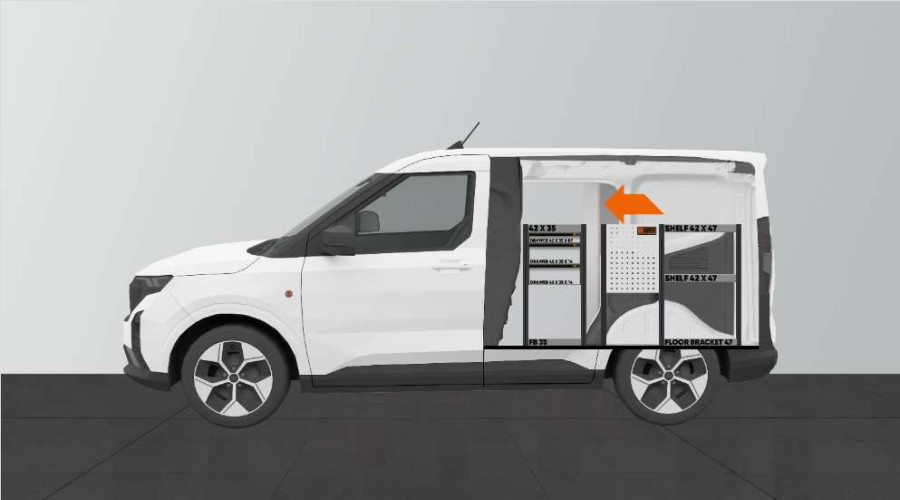 Yksi suosituimmista pakettiauton hyllyistä sinun Ford Courier L1. Kalusteet tarjoavat monipuoliset säilytysmahdollisuudet, sillä kuulalaakerikiskoilla olevat vetolaatikot mahdollistavat helpon pääsyn sivuovesta ja laatikot voi vetää ulos ajosuunnassa hyvän näkyvyyden varmistamiseksi. Niitä voi täydentää laatikoiden jakajilla, jotta pienet tarvikkeet pysyvät hyvässä järjestyksessä. Syvät hyllymme tarjoavat myös hyvät säilytysmahdollisuudet sekä työkalulaukuille että pienemmille koneille. Kuulalaakerikiskoilla olevat laatikot kestävät 35 kg tasaisesti jaettua painoa. Laatikoiden sisämitat on (mm) L-308, S-387, K-60 sekä K-130.