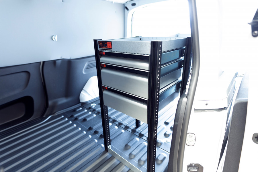 Yksi suosituimmista pakettiauton hyllyistä sinun VW Caddy Cargo & Ford Connect L1. Kalusteet tarjoavat monipuoliset säilytysmahdollisuudet, sillä kuulalaakerikiskoilla olevat vetolaatikot mahdollistavat helpon pääsyn sivuovesta ja laatikot voi vetää ulos ajosuunnassa hyvän näkyvyyden varmistamiseksi. Niitä voi täydentää laatikoiden jakajilla, jotta pienet tarvikkeet pysyvät hyvässä järjestyksessä. Syvät hyllymme tarjoavat myös hyvät säilytysmahdollisuudet sekä työkalulaukuille että pienemmille koneille. Kuulalaakerikiskoilla olevat laatikot kestävät 35 kg tasaisesti jaettua painoa. Laatikoiden sisämitat on (mm) L-308, S-387, K-60 sekä K-130.