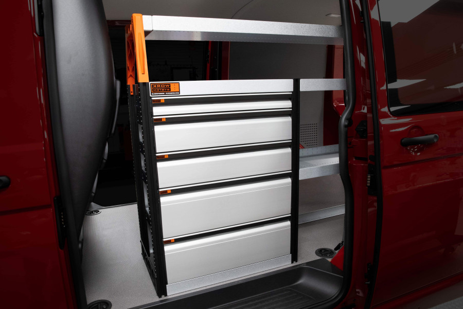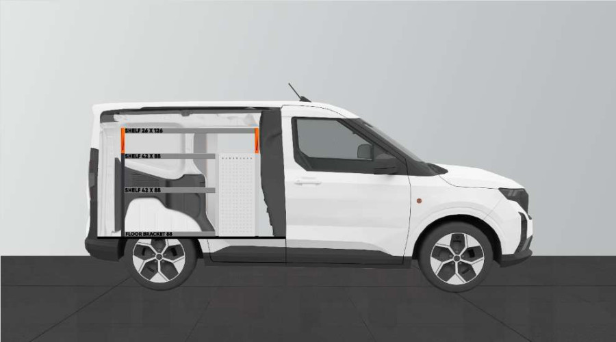 Täydennettynä laatikoiden ja hyllyjen yhdistelmällä tämä on erittäin suosittu autokaluste, joka sopii automalliin Berlingo, Combo, Proace City & Partner L2.