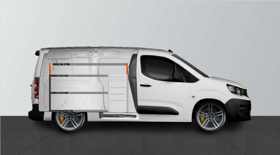 Tämä on yksi suosituimmista järjestelmistämme autoon Citroën Berlingo, Opel Combo, Fiat Doblo Toyota Proace City & Peugeot Partner L2, jossa on sivuovi kalusteen sisällä. Kaluste tarjoaa hyvät säilytysmahdollisuudet niin työkalulaukuille, koneille kuin pienille tarvikkeillekin. Saat myös laatikoston, jonka 5 erikokoista laatikkoa anntavat jokaiselle tavaralle oman paikkansa. Laatikoston takana on työkalutaulu, johon voidaan ripustaa tavaroita auton sisälle. Kuulalaakerikiskoilla varustettuja laatikoita täydentävät suositut laatikon sisäosat ja jakajat, joiden avulla laatikot on helppo pitää järjestyksessä. Päädyn täydentäminen Smartboxilla on myös suosittu vaihtoehto säilytystilan maksimoimiseksi.