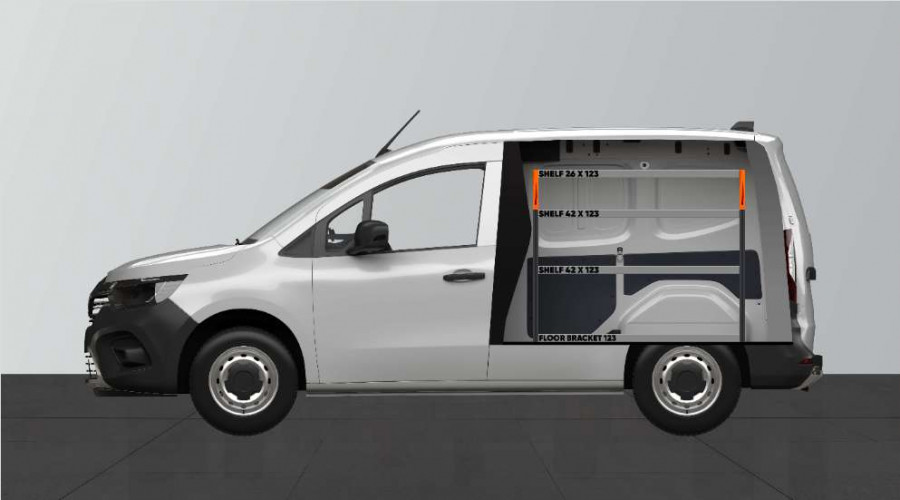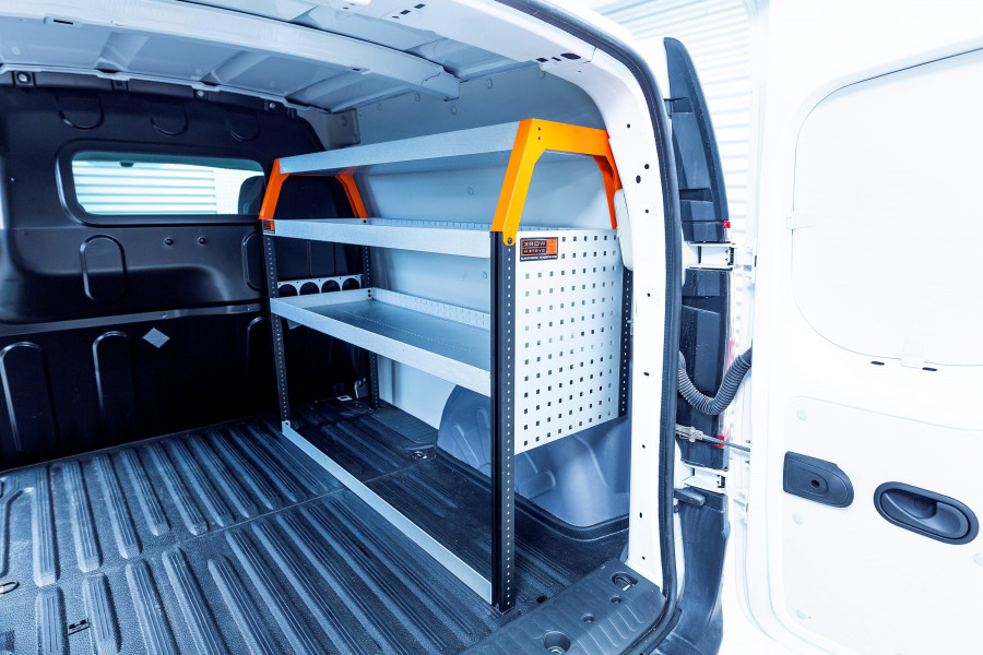 Autokaluste autoosi Mercedes Citan, Renault Kangoo & Nissan Townstar L1. Se tarjoaa hyvät säilytysmahdollisuudet niin työkalulaukuille, koneille kuin pienille tarvikkeillekin. Kalusteen 420 mm syvien hyllyjen ansiosta useimmat markkinoiden työkalulaukut sopivat siihen täydellisesti. Ylintä 262,5 mm:n syvyistä hyllyä voidaan täydentää moduulilaatikoilla, joiden avulla tavarat on helppo pitää järjestyksessä. Kannattaa hyödyntää myös päädyssä olevaa työkalutaulua.
