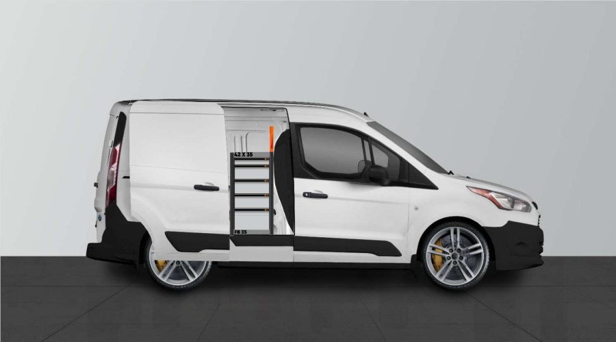 Tämä on yksi suosituimmista järjestelmistämme autoon Ford Connect L1, jossa on sivuovi kalusteen sisällä. Kaluste tarjoaa hyvät säilytysmahdollisuudet niin työkalulaukuille, koneille kuin pienille tarvikkeillekin. Saat myös laatikoston, jonka 5 erikokoista laatikkoa anntavat jokaiselle tavaralle oman paikkansa. Laatikoston takana on työkalutaulu, johon voidaan ripustaa tavaroita auton sisälle. Kuulalaakerikiskoilla varustettuja laatikoita täydentävät suositut laatikon sisäosat ja jakajat, joiden avulla laatikot on helppo pitää järjestyksessä. Päädyn täydentäminen Smartboxilla on myös suosittu vaihtoehto säilytystilan maksimoimiseksi.