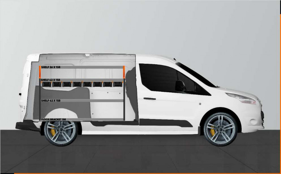 Autokaluste sinulle, joka olet päättänyt luoda järjestystä autoosi Ford Connect L2. Tähän kalusteeseen sisältyy 8 kätevää moduulilaatikkoamme. Voit vetää ne kätevästi ulos moduulilaatikoiden kiskoilla ja järjestää ne hyllyille. Työkalulaukuille, koneille ja materiaaleille on luonnollisesti myös hyvät säilytysmahdollisuudet, sillä hyllyt ovat syvyydeltään 420 mm.
