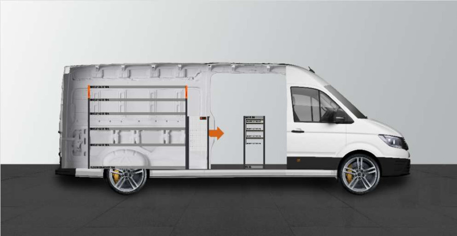 Yksi suosituimmista pakettiauton hyllyistä sinun MAN TGE & Volkswagen Crafter L4. Kalusteet tarjoavat monipuoliset säilytysmahdollisuudet, sillä kuulalaakerikiskoilla olevat vetolaatikot mahdollistavat helpon pääsyn sivuovesta ja laatikot voi vetää ulos ajosuunnassa hyvän näkyvyyden varmistamiseksi. Niitä voi täydentää laatikoiden jakajilla, jotta pienet tarvikkeet pysyvät hyvässä järjestyksessä. Syvät hyllymme tarjoavat myös hyvät säilytysmahdollisuudet sekä työkalulaukuille että pienemmille koneille. Kuulalaakerikiskoilla olevat laatikot kestävät 35 kg tasaisesti jaettua painoa. Laatikoiden sisämitat on (mm) L-308, S-387, K-60 sekä K-130.