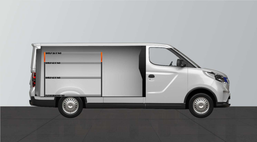 SHORT42 - autokaluste tarjoaa runsaasti säilytystilaa autoon Maxus e-Deliver 3 L2.