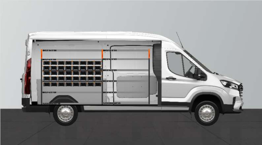 RACK on uusi, markkinoiden johtava autokaluste autoon Maxus e-Deliver9 L3. Se sopii täydellisesti sinulle, joka tarvitset hyviä säilytysmahdollisuuksia valikoimalle, kuten ruuville, liittimille, pulteille, poranterille jne. Kalustesisältääyhteensä 40 uusia, jaettavia moduulilaatikoitamme. Moduulilaatikot vedetään ulos kiinteästi asennetuilla kiskoilla, joten niihin pääsee helposti käsiksi. Moduulilaatikoiden etuosa takaa hyvän käytettävyyden, ja niitä voidaan täydentää läpinäkyvällä etuosalla ja poikittaisilla väliseinillä, jotka voidaan asentaa 60 mm:n välein.