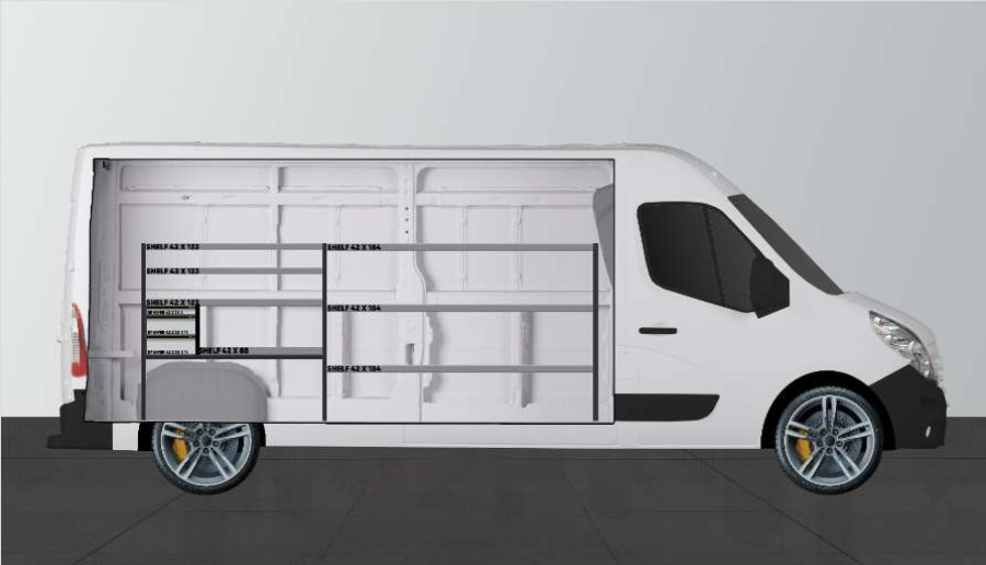 Edullinen vaihtoehto sinulle, joka tarvitset yksinkertaisempaa säilytysjärjestelmää ja haluat sekä kuulalaakerikiskoilla varustettuja laatikoita että hyllyjä autoosi Opel Movano, Renault Master & Nissan NV400. Kalusteen 420 mm syvien hyllyjen ansiosta useimmat markkinoiden työkalulaukut sopivat siihen täydellisesti. Kuulalaakerikiskoilla varustettuja laatikoita täydentävät suositut laatikon sisäosat ja jakajat,joiden avulla laatikot on helppo pitää järjestyksessä.