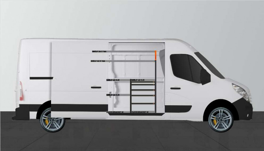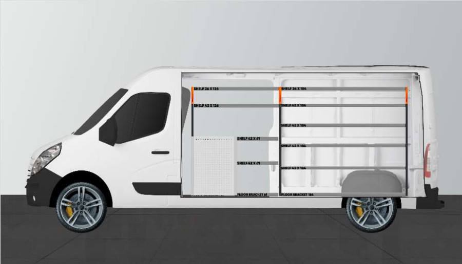 Tämä on yksi suosituimmista järjestelmistämme autoon Opel Movano, Renault Master & Nissan NV400 L3, jossa on sivuovi kalusteen sisällä. Kaluste tarjoaa hyvät säilytysmahdollisuudet niin työkalulaukuille, koneille kuin pienille tarvikkeillekin. Saat myös laatikoston, jonka 5 erikokoista laatikkoa anntavat jokaiselle tavaralle oman paikkansa. Laatikoston takana on työkalutaulu, johon voidaan ripustaa tavaroita auton sisälle. Kuulalaakerikiskoilla varustettuja laatikoita täydentävät suositut laatikon sisäosat ja jakajat, joiden avulla laatikot on helppo pitää järjestyksessä. Päädyn täydentäminen Smartboxilla on myös suosittu vaihtoehto säilytystilan maksimoimiseksi.