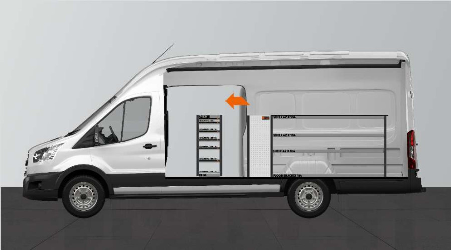 Järjestelmä hyllyillä ja vetolaatikoilla joihin pääsee helposti käsiksi sivuliukuoven kautta. Työtaso on valmistettu 8mm kompaktilaminaatista, joka on erittäin kovaa ja kulutusta kestävää. Sopii autoon Ford Transit L4H3. Lisätarvikkeet kuvassa eivät sisälly hintaan mutta voidaan tietenkin ostaa lisäksi. Kaikki asennustarvikkeet ja -ohjeet tulevat tuotteen mukana. Work Systemin kaikki auton kalusteet ovat Ruotsissa valmistettuja ja kehitelty kestämään kovaa kulutusta.