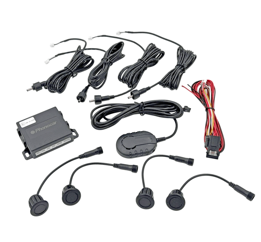 Pysäköintitutkassa on neljä anturia, summeri, johdot ja asennusosat. Järjestelmä on suunniteltu asennettavaksi ajoneuvon takapuskuriin tai etupuskuriin. Oikea toiminta edellyttää, että A8-virrankatkaisin (lisävaruste) on kytketty.