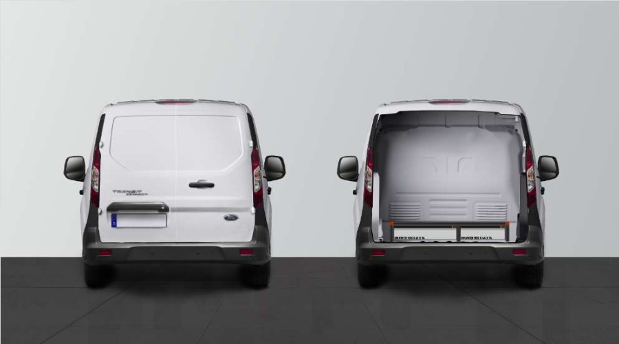 Kaksoislattia K: 202 mm, 3 laatikkoa, autoon Ford Connect L1, 2-istuttava