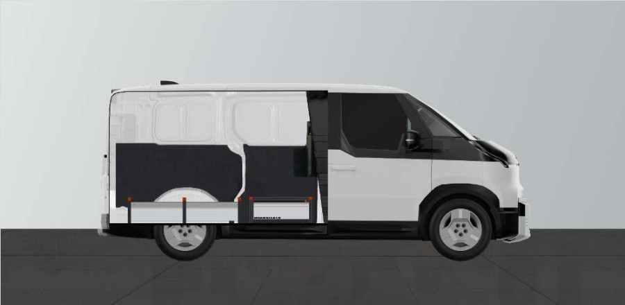 Kaksoislattia K:272 mm, 3 laatikkoa, KIA PV5 Standard comfort-seinä