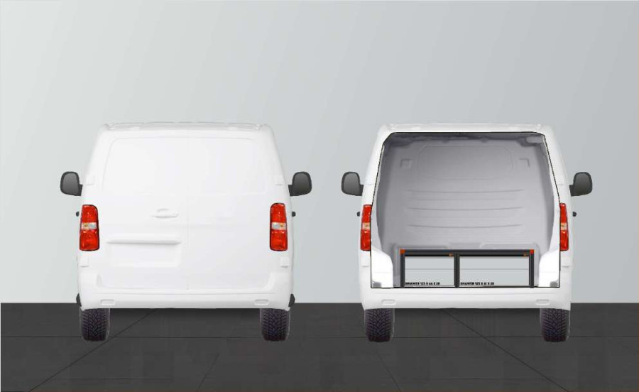 Kaksoislattia K: 342 mm, 3 laatikkoa, autoihin Expert, Vivaro 2020-, Jumpy, Scudo, Scudo & ProAce L2 tavallinen mukavuusseinä