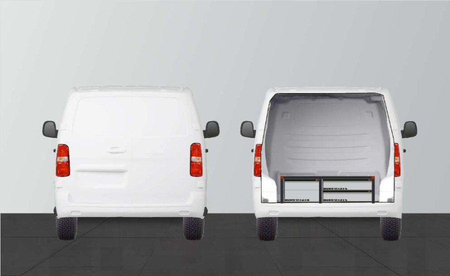 Kaksoislattia sopii autoihin Peugeot Expert L2, Opel Vivaro L2 2020-, Citroën Jumpy L2 & Toyota Medium tavallinen mukavuusseinä