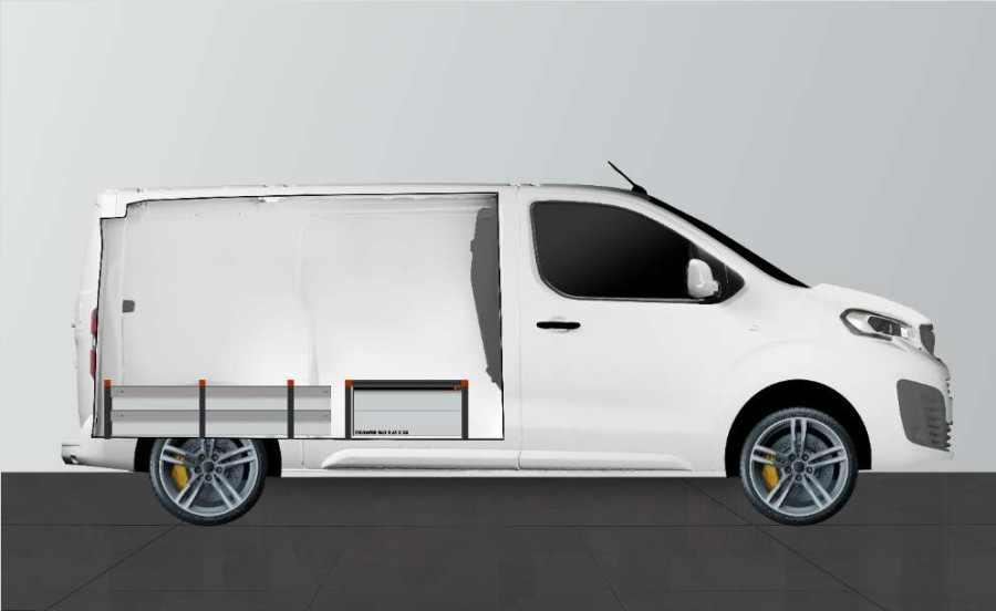 Kaksoislattia K: 342 mm, 4 laatikkoa, autoihin Expert, Vivaro 2020-, Jumpy, Scudo, Scudo & ProAce L2 tavallinen mukavuusseinä