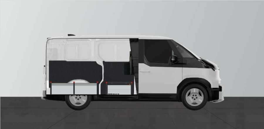 Kaksoislattia K:342 mm, 3 laatikkoa, KIA PV5 Standard comfort-seinä