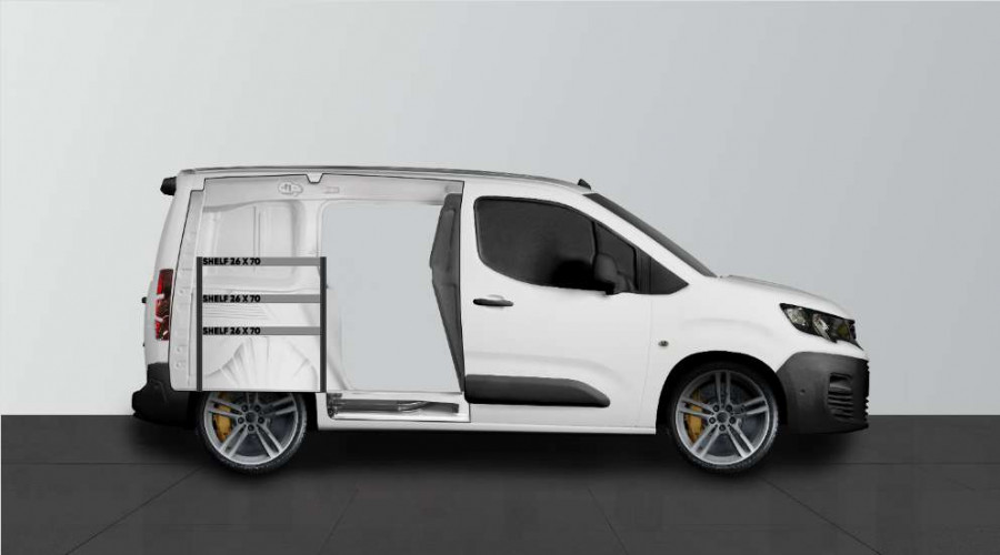 En kortare bilinredning för den som vill bevara bredden i sin CITROËN BERLINGO, Opel Combo, Fiat Doblo PEUGEOT PARTNER & TOYOTA PROACE CITY L1. Inredningen är 262,5mm djup och möjliggör bra förvaringsmöjligheter för det mindre sortimentet så som förpackningar med skruvar och mindre produkter till fastighetsskötare, elektriker och VVS-are. Inredningen passar till bilar både med och utan sidodörrar och det finns möjlighet att komplettera inredningen med våra smarta modulbackar. Att komplettera gaveln med vår smartbox är också ett populärt alternativ för att maximera förvaringsutrymmet.