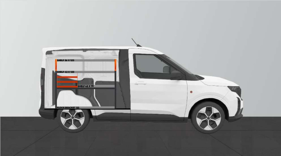 En populär inredning för dig som behöver bra förvaringsmöjligheter för såväl ditt mindre sortiment som verktygsväskor och maskiner. Denna serviceinredning innehåller 3st sortimenthållare som är anpassade för marknadens mest populära sortimentlåda, Racco Carrylight. Dessa sortimentlådor kan inredningen kompletteras med om så önskas. Bilinredningen passar perfekt till din Ford Courier L1.