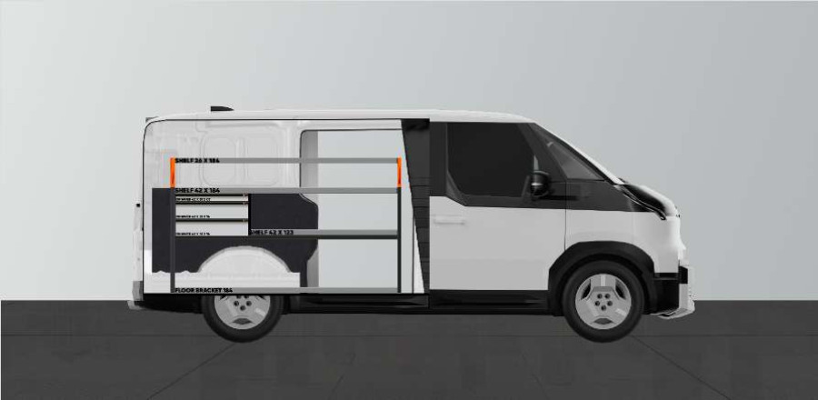 Med en mix av lådor och hyllor är detta en mycket populär bilinredning som passar KIA PV5 L2H1.