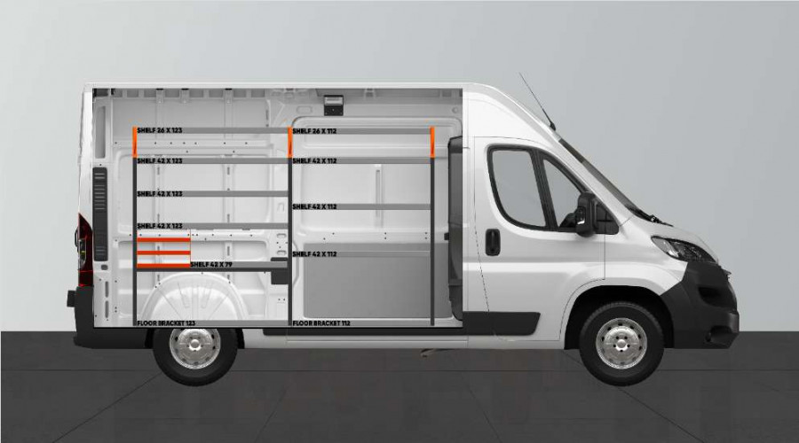 Med en mix av lådor och hyllor är detta en mycket populär bilinredning som passar Expert, Jumpy, Vivaro, Scudo & ProAce L2.