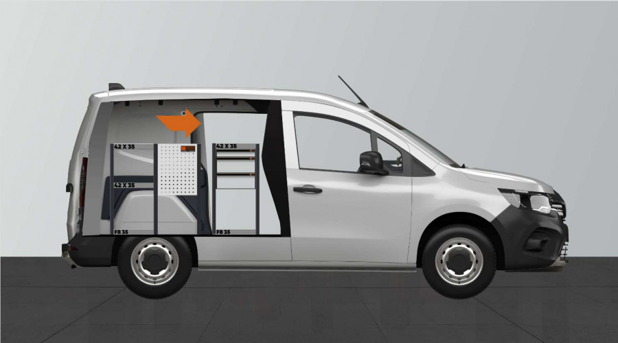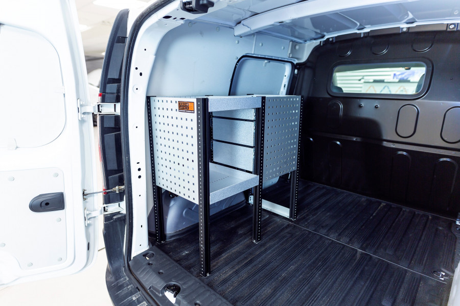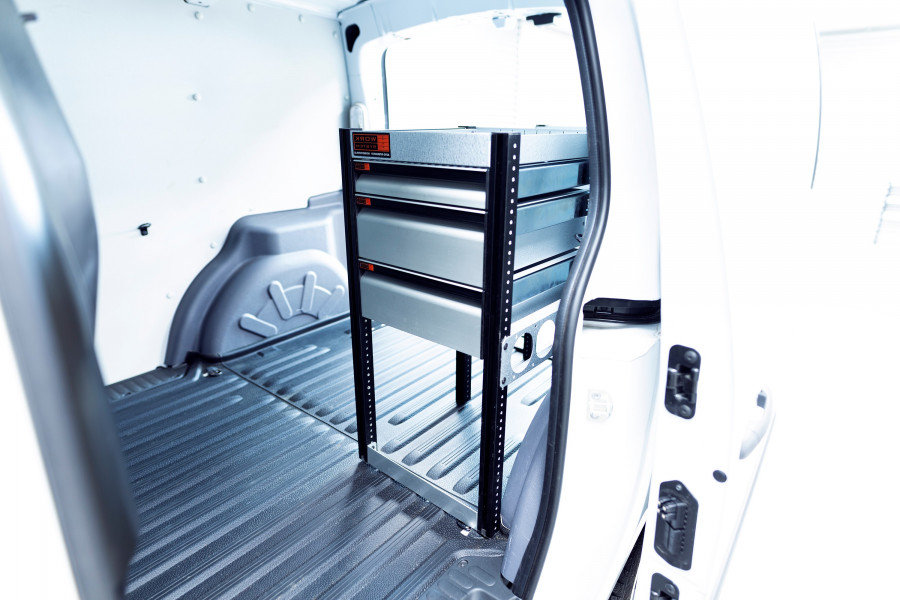 En av de mest populära inredningarna till Mercedes Citan, Renault Kangoo & Nissan Townstar L1. Inredningen ger varierande förvaringsmöjligheter då lådorna på kullagerskenorna ger smidig åtkomst via sidodörren samtidigt som lådorna kan dras ut i färdriktningen för att ge en bra överblick. Dessa går att komplettera med lådavdelare för att maximera strukturen bland det mindre sortimentet. Våra djupa hyllor ger även bra förvaringsmöjligheter för såväl verktygsväskor som mindre maskiner. Fördelad lastvikt i lådorna på kullagerskenor är 35kg/st. Lådornas innermått är (mm) B:308, D:387, H:60 och H:130.