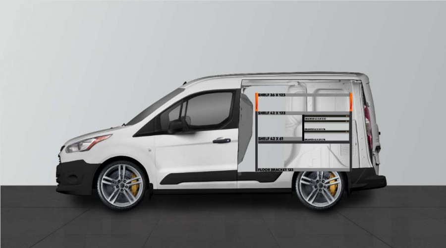 Detta är en av våra mest populära bilinredningar till Ford Connect L1. LS3-inredningen används av såväl fastighetsskötare som servicetekniker, elektriker, VVS:are och snickare. Inredningen ger bra förvaringsmöjligheter för både verktygsväskor, maskiner, förbrukningsmaterial och ditt minsta sortiment. Lådorna kompletteras ofta med våra lådinsatser och avdelare medan gaveln är populär att komplettera med vår smartbox för att maximera förvaringsutrymmet.