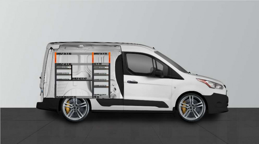 På jakt efter en inredning med mycket lådor? Har du dessutom stora krav? Då är detta alternativet för dig och din Ford Connect L1H1. Totalt får du här 8 st lådor på kullagerskenor. Inredningen ger bra förvaringsmöjligheter för såväl dina verktygsväskor, maskiner som ditt mindre sortiment. Du får en lådhurts med lådor av varierade storlekar för att ge var sak sin plats. Lådorna på kullagerskenor är populära att komplettera med våra nya sortimentlådor för att skapa bästa struktur. Fördelad lastvikt i lådorna på kullagerskenor är 35kg/st. Lådornas innermått är (mm) B-579, D-387, H-60, H-130 samt H-200.