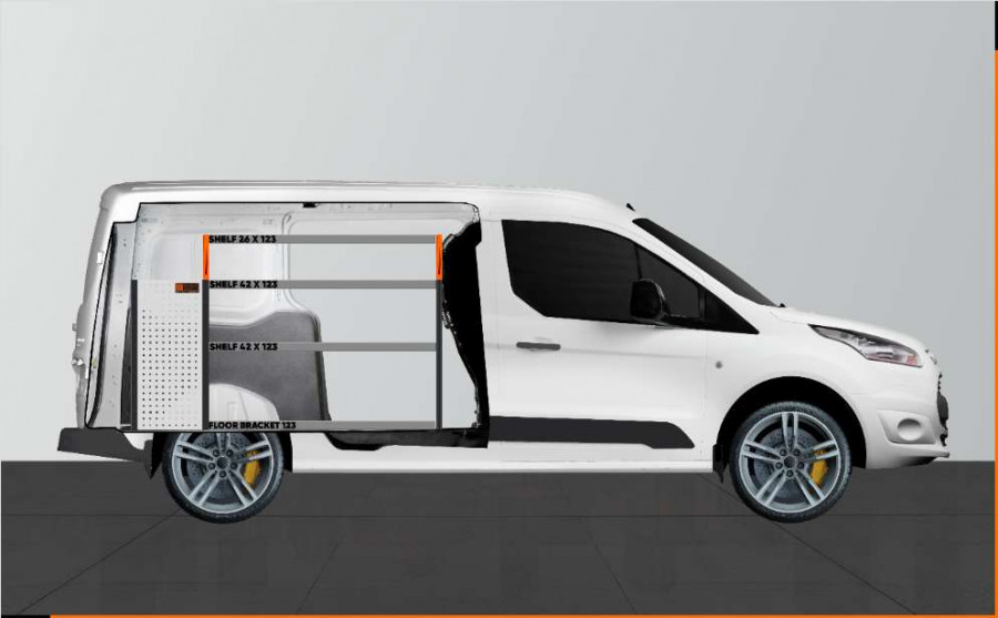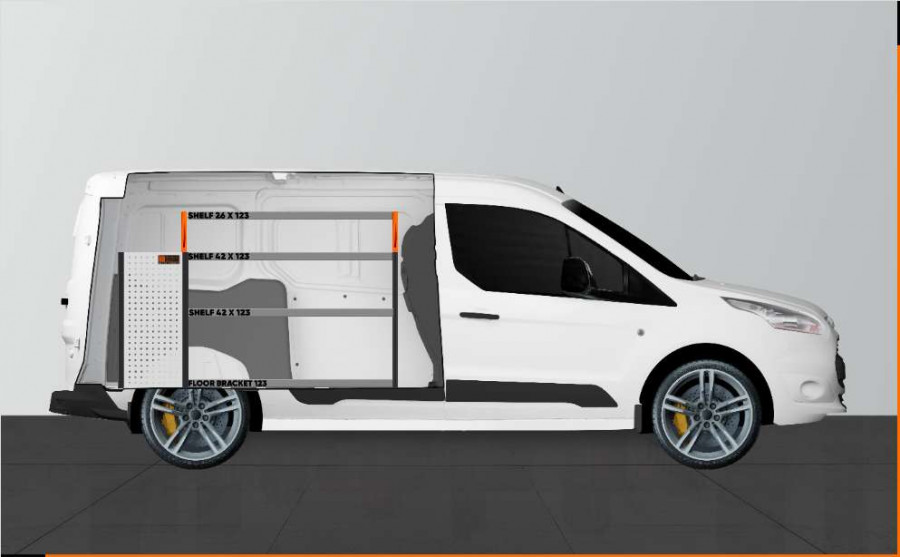 Med mix av lådor och hyllor är detta en mycket populär bilinredning som passar Ford Connect L2.