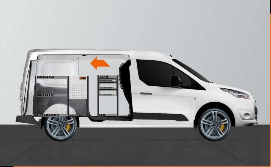 Med mix av lådor och hyllor är detta en mycket populär bilinredning som passar Ford Connect L2.