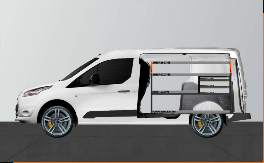 Detta är en av våra mest populära bilinredningar till Ford Connect L2. LS3-inredningen används av såväl fastighetsskötare som servicetekniker, elektriker, VVS:are och snickare. Inredningen ger bra förvaringsmöjligheter för både verktygsväskor, maskiner, förbrukningsmaterial och ditt minsta sortiment. Lådorna kompletteras ofta med våra lådinsatser och avdelare medan gaveln är populär att komplettera med vår smartbox för att maximera förvaringsutrymmet.