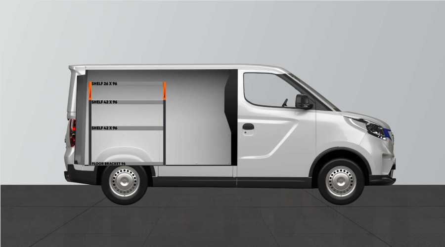 Med bilinredningen SHORT42 får du gott om förvaring i din Maxus e-Deliver 3 L1.