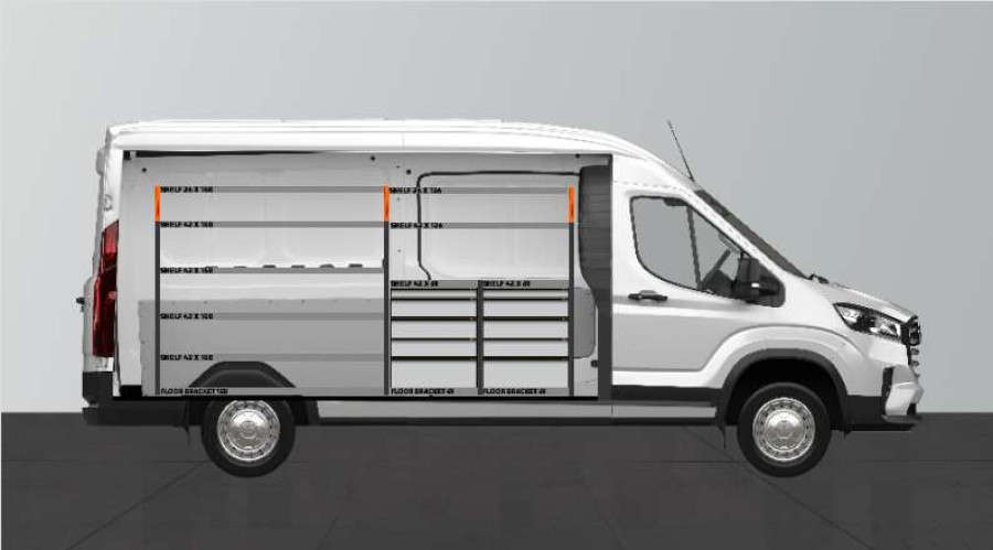 En bilinredning med många lådor till din Maxus e-Deliver9 L3 som ger bra förvaringsmöjligheter.