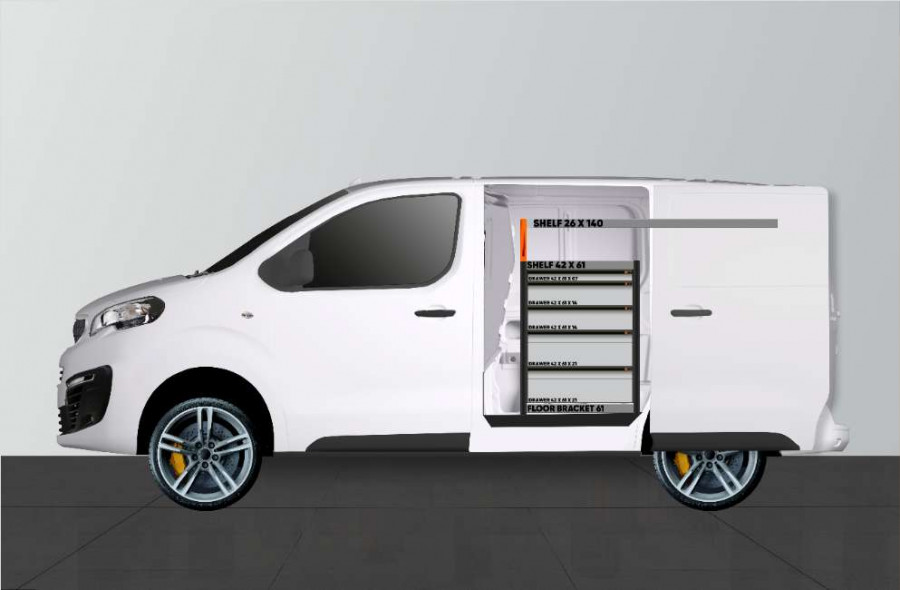 Med en mix av lådor och hyllor är detta en mycket populär bilinredning som passar Expert, Jumpy, Vivaro, Scudo & ProAce L2.