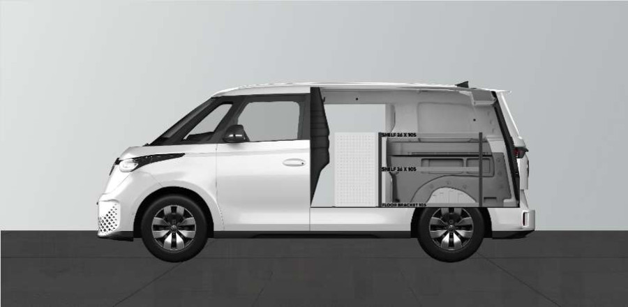 Med denna bilinredning får du mycket förvaring i både hyllor och lådor passande VW ID BUZZ L1.
