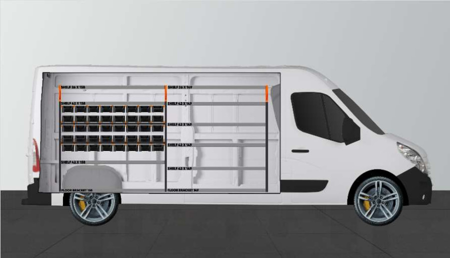 RACK är en ny, branschledande bilinredning till Opel Movano, Renault Master & Nissan NV400. Den passar perfekt för dig som behöver bra förvaringsmöjligheter för ditt sortiment så som skruv, kopplingar, bultar, borr med mera. Inredningen är maximerad med totalt 80 av våra nya, avdelningsbara modulbackar. Modulbackarna dras ut på fastmonterade skenor vilket ger smidig åtkomst. Fronten på modulbackarna är utformad för optimal tillgänglighet och går att komplettera med transparent front och tvärsgående mellanväggar som går att sätta efter varje 60mm.