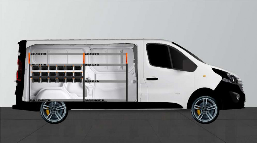 RACK är en ny, branschledande bilinredning till Fiat Talento, Nissan NV300 & Renault Trafic L2. Den passar perfekt för dig som behöver bra förvaringsmöjligheter för ditt sortiment så som skruv, kopplingar, bultar, borr med mera. Inredningen är maximerad med totalt 18 av våra nya, avdelningsbara modulbackar. Modulbackarna dras ut på fastmonterade skenor vilket ger smidig åtkomst. Fronten på modulbackarna är utformad för optimal tillgänglighet och går att komplettera med transparent front och tvärsgående mellanväggar som går att sätta efter varje 60mm.