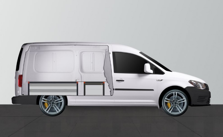 Dubbelgolv H:360mm 4-lådor till VW Caddy L2 med Prefencevägg. (till 2020)