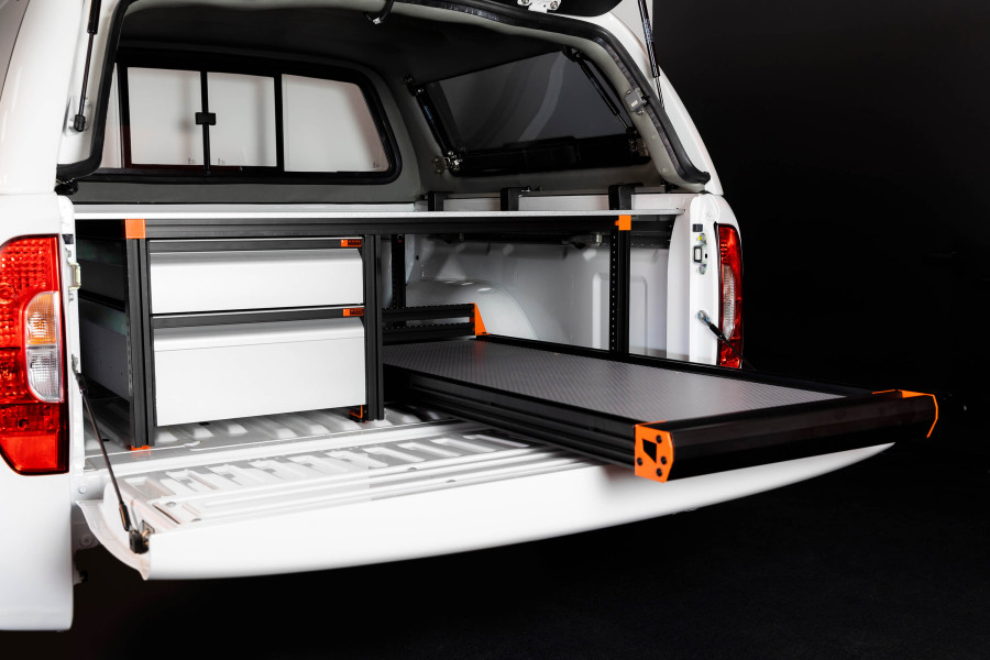 Utdragbar lastsläde och utdragslådor med förhöjt golv till Ford Ranger & VW Amarok från årsmodell 2023-.